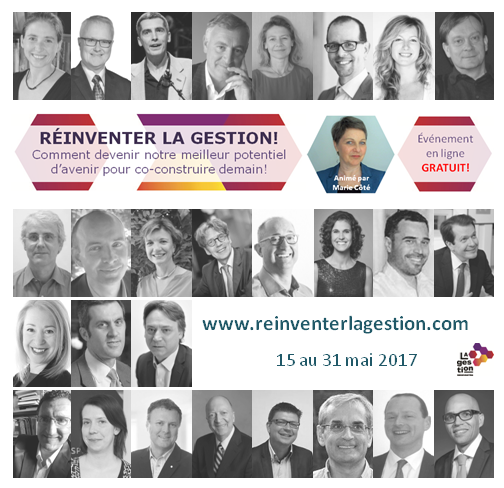 Marie Côté, fondatrice de La gestion réinventée et auteure en est l’initiatrice et l’animatrice :